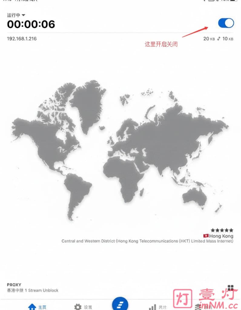 来到 Quantumult 主页,下方栏中间按钮选择节点,右上角开启关闭连接。