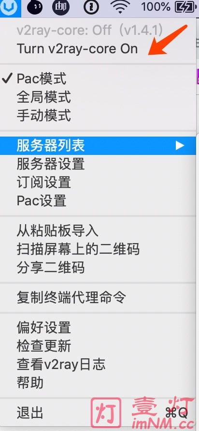 选择最小化V2RayN程序,[服务器] 选择你需要使用的节点。然后右下角选择节点启用HTTP代理以及路由模式(图6),「HTTP代理模式」选择 「PAC模式」。