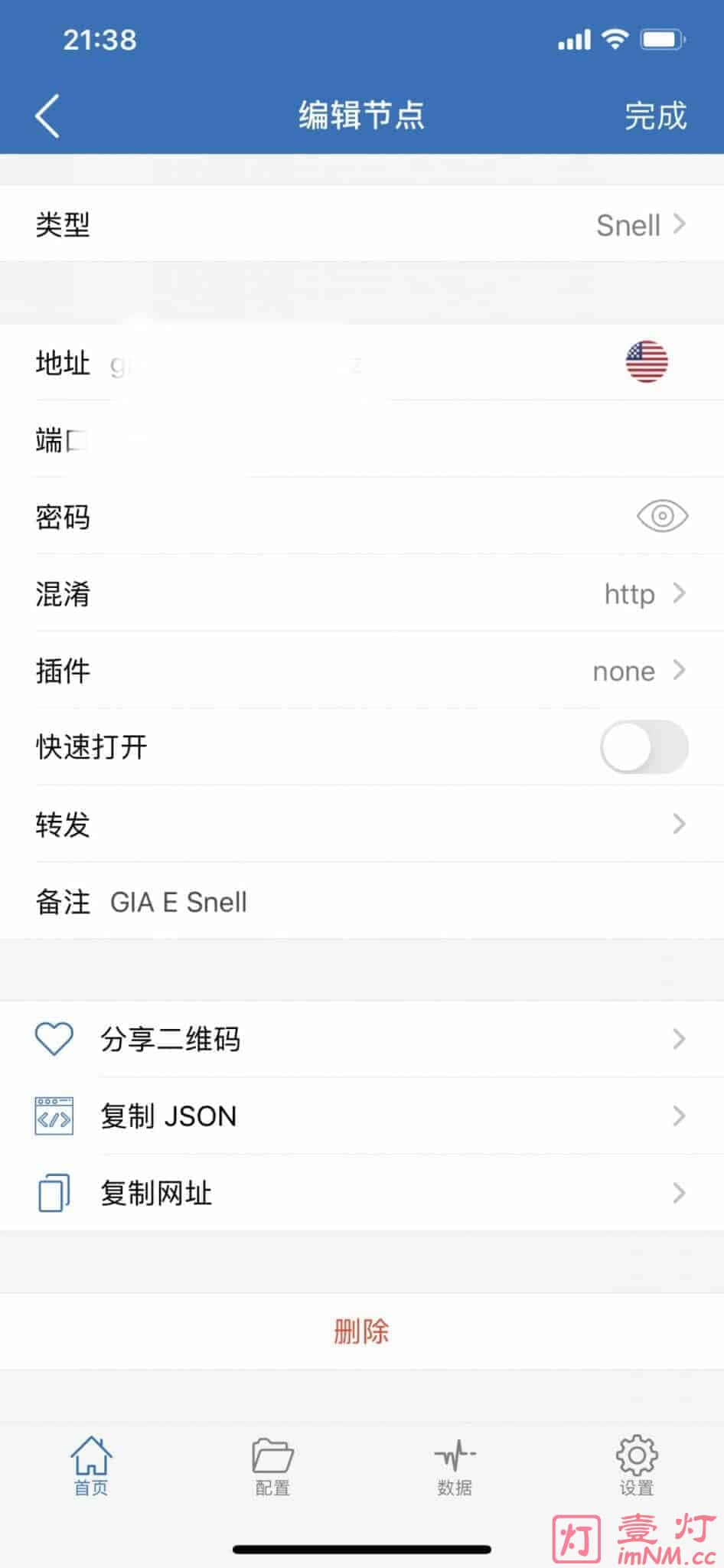 搭建成功的Snell服务器配置参数只有4个,具体配置示例如下:
